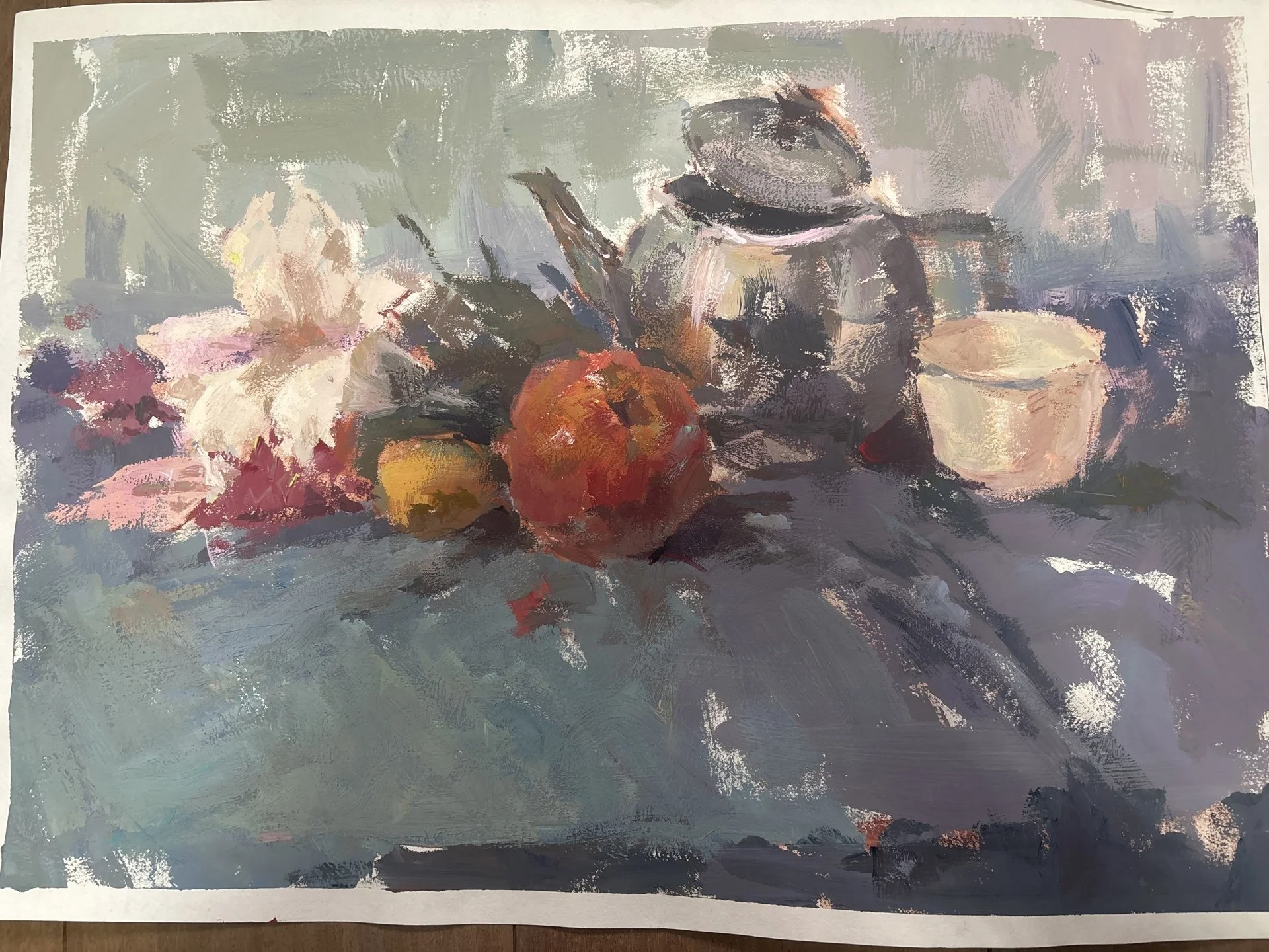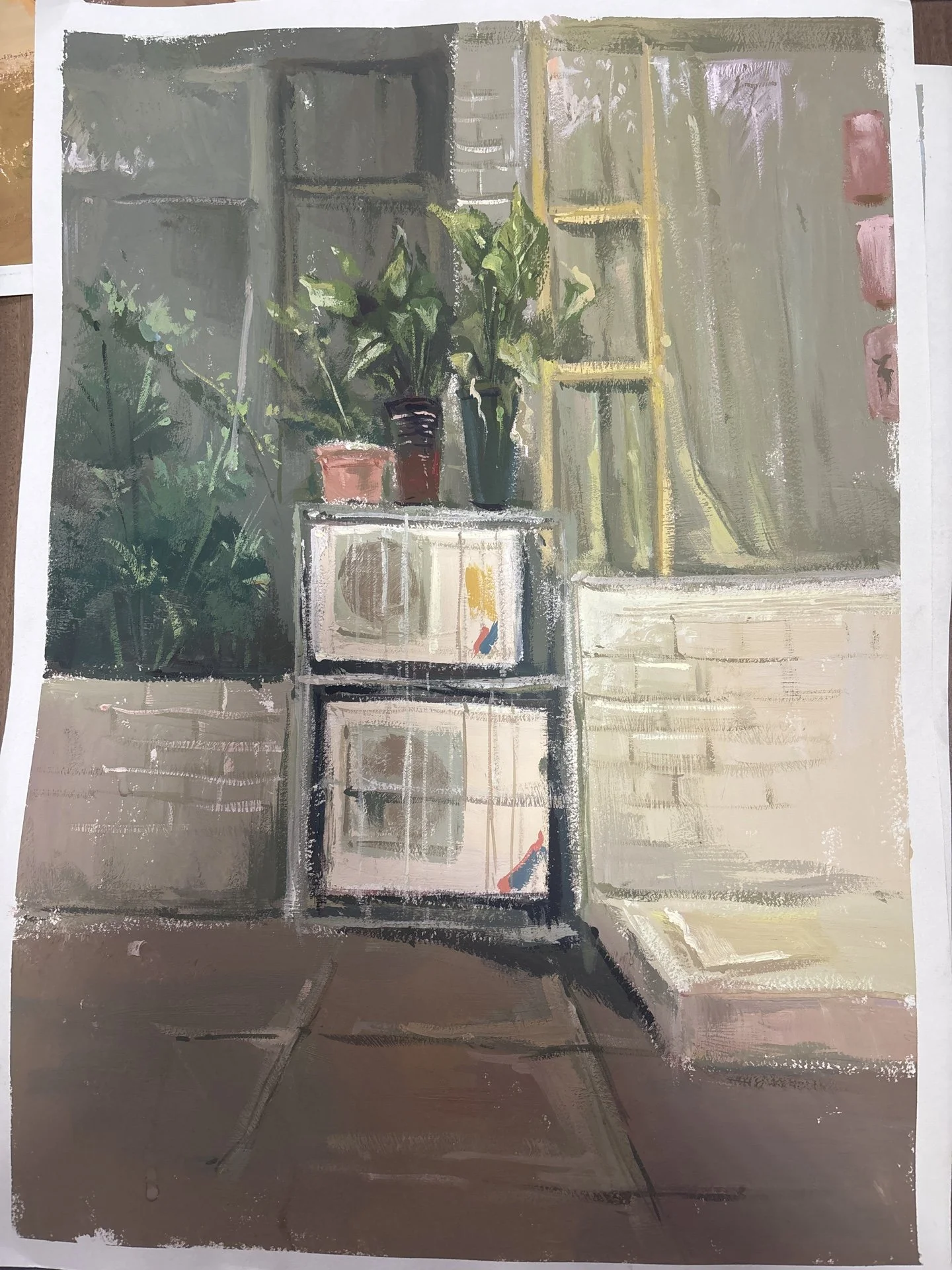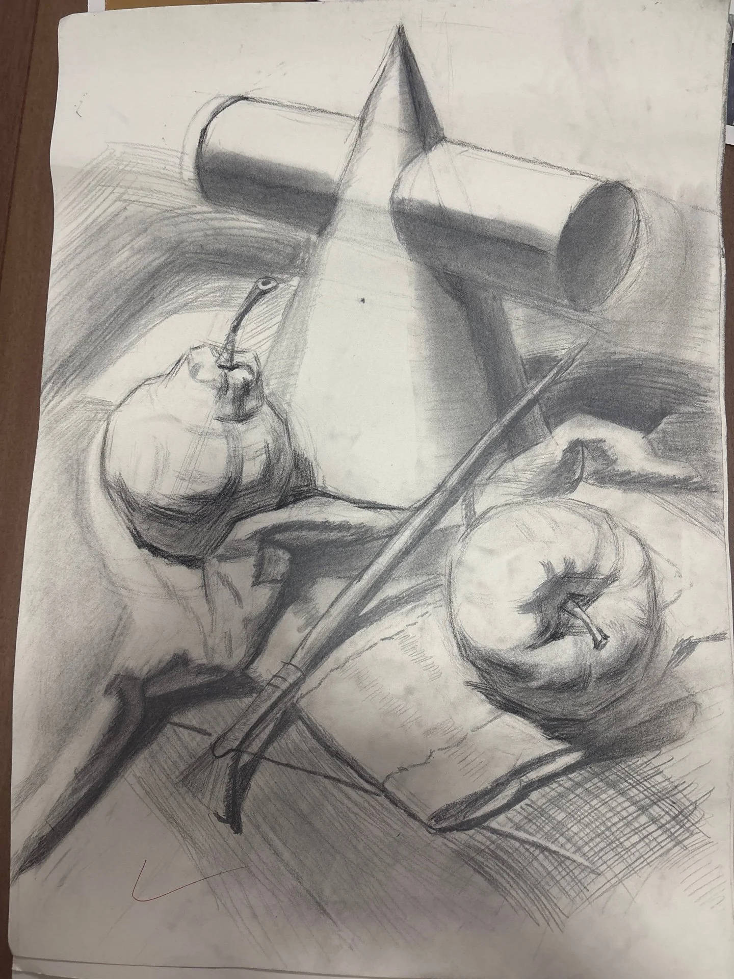 I practice art daily after school. My favorite mediums are graphite drawing and oil painting. My works: My most cherished subject matters are courtyards, still-life of tables, and portraits of my friends.